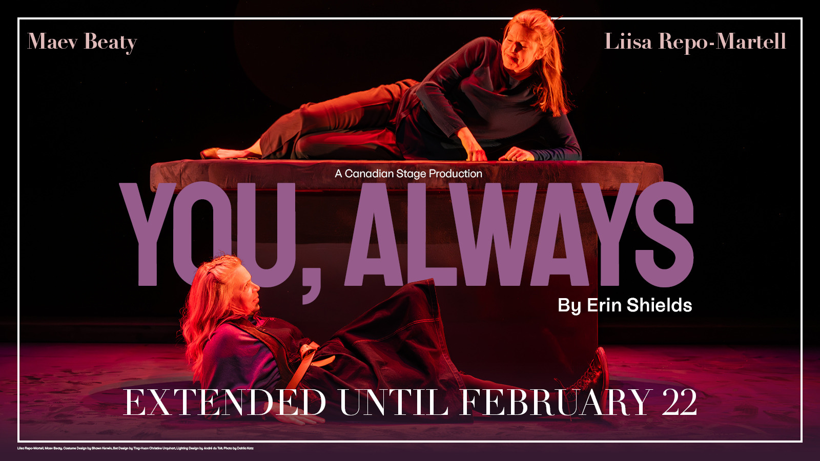 In the 30+ years of its history, Canadian Stage has employed thousands of artists and developed and produced hundreds of new productions. Many of the plays developed by Canadian Stage have been awarded and nominated for Canada's most prestigious literary and performing arts honours, including the Governor General's, Chalmers and Dora Mavor Moore Awards.