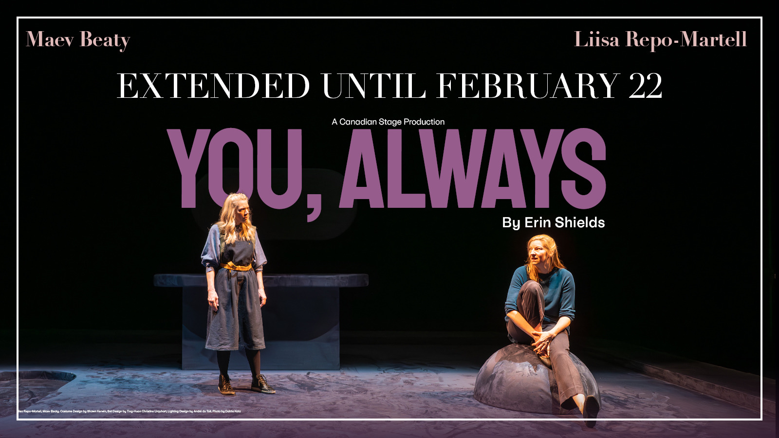 In the 30+ years of its history, Canadian Stage has employed thousands of artists and developed and produced hundreds of new productions. Many of the plays developed by Canadian Stage have been awarded and nominated for Canada's most prestigious literary and performing arts honours, including the Governor General's, Chalmers and Dora Mavor Moore Awards.